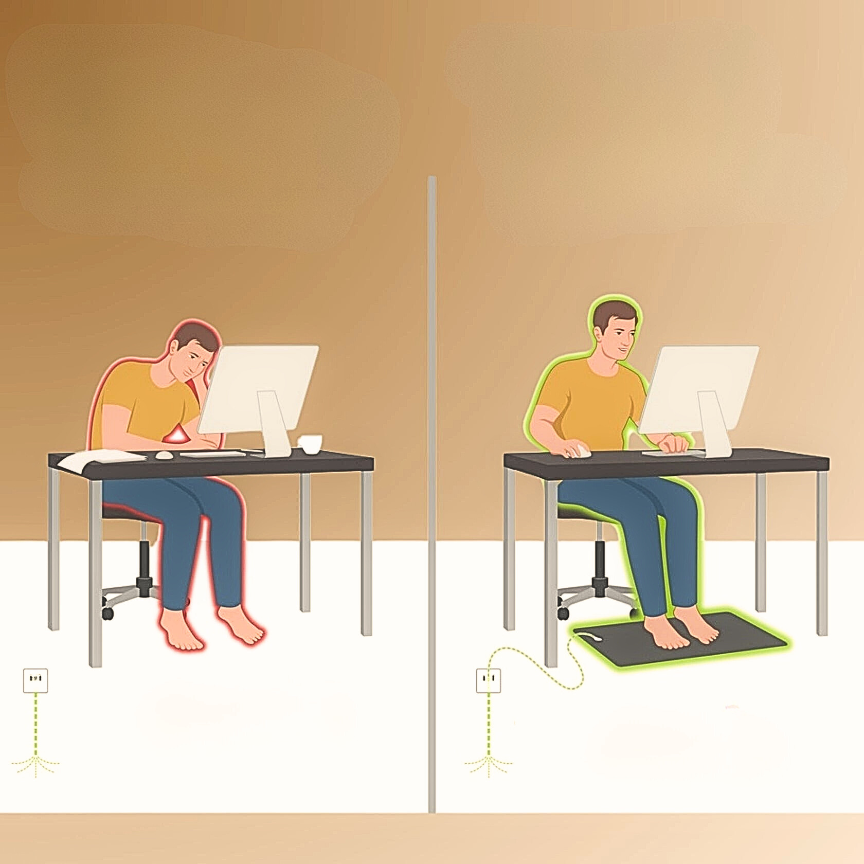 Uziemianie polega na bezpiecznym połączeniu ciała z potencjałem ziemi, podobnie jak podczas chodzenia boso po trawie lub piasku. Mata uziemiająca umożliwia taki kontakt w warunkach domowych, poprzez podłączenie do uziemionego gniazdka. Dzięki temu organizm może wyrównywać nagromadzone ładunki elektryczne. To prosty, pasywny proces, niewymagający zasilania prądem.